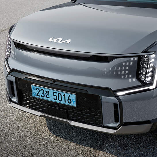 2024 기아 EV9의 외관은 미래지향적 디자인과 대형 SUV의 강렬한 존재감을 동시에 갖춘 모습입니다. 전면부에서는 기아의 전기차 라인업을 상징하는 디지털 타이거 페이스 그릴이 적용되어 있으며, 날렵한 LED 헤드램프가 세련된 느낌을 더합니다. 이 헤드램프는 픽셀형 LED 램프로 이루어져 전통적인 램프보다 한층 더 첨단 기술의 이미지를 보여줍니다.