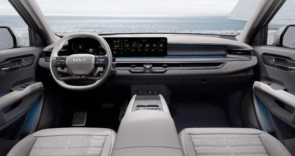 대시보드에는 12.3인치 디지털 계기판과 12.3인치 인포테인먼트 시스템이 통합된 형태로 자리 잡고 있으며, 최신 기아 커넥트 시스템이 적용되어 직관적인 사용자 경험을 제공합니다. 이 시스템은 애플 카플레이와 안드로이드 오토를 지원하며, 음성 인식 기능도 포함되어 있어 손쉬운 제어가 가능합니다.