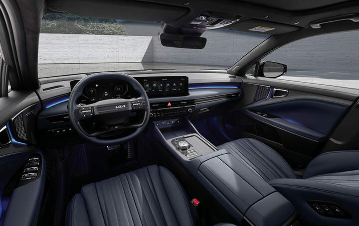 실내 공간은 기아 K8의 강점 중 하나로, 5명이 여유롭게 앉을 수 있는 넓은 공간을 제공합니다. 트림에 따라 나파 가죽 시트와 같은 프리미엄 소재로 마감된 시트는 탑승자의 편안함을 극대화합니다. 앞좌석뿐만 아니라 뒷좌석 시트 히팅 및 통풍 기능도 탑재되어 있어, 탑승자 모두가 최상의 안락함을 느낄 수 있습니다. 또한 앰비언트 라이트 시스템은 실내 분위기를 더욱 고급스럽게 연출해 줍니다.