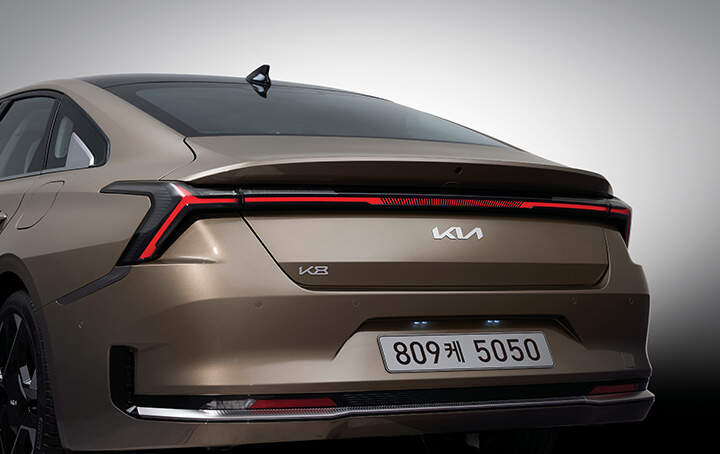 측면에서 보이는 K8의 라인은 대형 세단으로서의 당당한 자세를 보여줍니다. 전장 5,015mm, 전폭 1,875mm, 전고 1,455mm로 넓은 차체를 자랑하며, 곡선이 강조된 디자인이 차를 더욱 역동적으로 보이게 합니다. 후면부는 리어 콤비네이션 램프가 차 전체를 가로지르며 고급스러운 마감을 제공합니다. 특히 2024 K8은 18인치 또는 19인치 알로이 휠로 선택할 수 있어, 소비자들이 원하는 스타일에 맞게 차량을 꾸밀 수 있습니다.