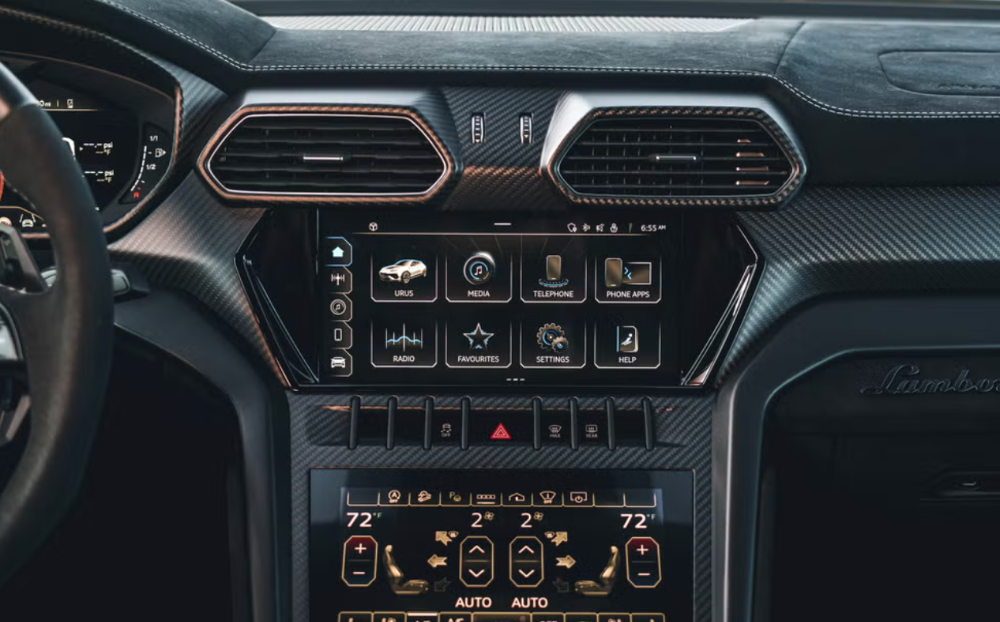 대시보드 중앙에는 12.3인치 터치스크린 인포테인먼트 시스템이 자리 잡고 있으며, 람보르기니의 HMI(Human Machine Interface)가 적용되어 직관적인 조작이 가능합니다. 애플 카플레이안드로이드 오토를 지원해 스마트폰과의 연동이 매우 쉽습니다. 또한, 디지털 계기판은 주행 정보를 실시간으로 제공하며, 운전자의 편의성을 극대화합니다.