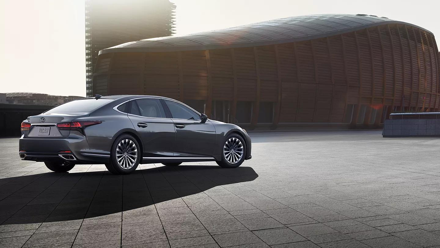 후면부에서는 L자형 LED 테일램프가 차량의 폭을 강조하며, 하이브리드 모델임에도 불구하고 스포츠카의 감각을 유지한 디자인 요소들이 적용되어 있습니다. 전체적으로 LS500h는 우아함과 강인함이 조화를 이루며, 세련미와 고급스러움을 동시에 제공합니다.