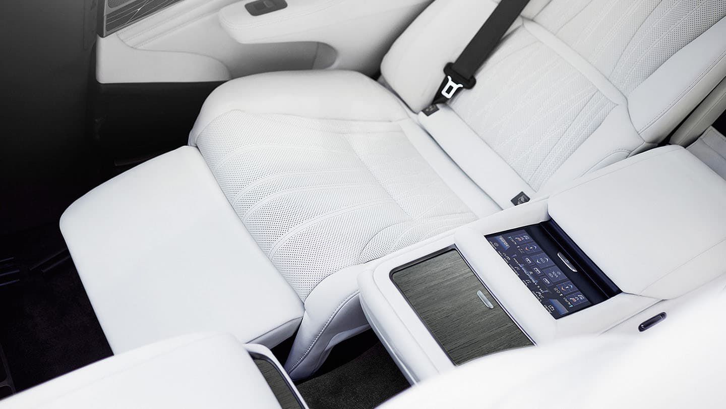 뒷좌석은 리클라이닝 기능이 탑재되어 있어 탑승자의 편안함을 극대화하며, 넓은 레그룸 덕분에 장거리 주행 시에도 쾌적한 승차감을 제공합니다. 마크 레빈슨 프리미엄 사운드 시스템이 적용되어 실내에서 풍부한 음향을 경험할 수 있으며, 앰비언트 라이트는 탑승자의 감성을 자극하는 고급스러운 분위기를 연출합니다.