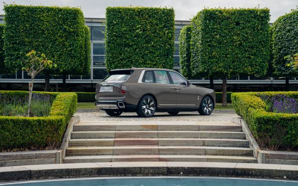 전장 5,341mm, 전폭 2,000mm, 전고 1,835mm의 크기는 컬리넌을 웅장하게 보이게 하며, 측면 디자인에서 나타나는 깔끔한 라인과 강렬한 비율이 눈길을 사로잡습니다. 이 거대한 차체는 롤스로이스 특유의 부드러운 곡선과 결합해 압도적인 존재감을 발휘하면서도 우아함을 잃지 않습니다. 22인치 휠이 기본 장착되어, 차량의 비례감을 완벽하게 유지하면서도 고급스러운 느낌을 강조합니다.