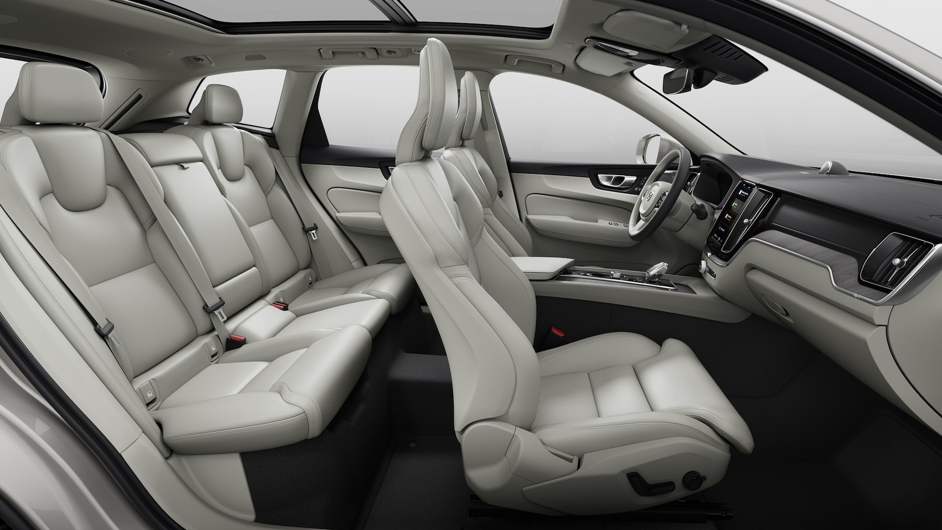 XC60의 실내는 볼보의 전통적인 고급스러움과 최첨단 기술이 결합된 공간입니다. 실내 소재는 프리미엄 가죽과 나무 트림이 사용되었으며, 스칸디나비아 디자인 철학이 반영된 깔끔한 마감이 돋보입니다. 넉넉한 5인승 구조로, 특히 2열 좌석은 성인 탑승자에게도 충분한 공간을 제공합니다.