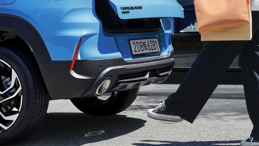 후면부는 LED 테일램프와 함께 깔끔하게 마무리되었으며, 후방 범퍼의 크롬 디테일이 고급스러운 느낌을 더해줍니다. 전반적으로 트레일블레이저는 강인하면서도 세련된 디자인을 통해 도시와 자연을 넘나드는 라이프스타일에 적합한 모델로 설계되었습니다.