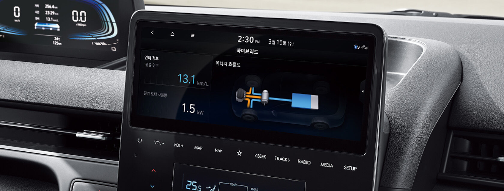 또한, 스타리아 하이브리드에는 스마트 회생제동 시스템이 적용되어 브레이크 시 에너지를 회수해 배터리를 충전합니다. 다양한 주행 모드(에코, 노멀, 스포츠)를 통해 주행 상황에 맞게 차량의 성능을 최적화할 수 있으며, 모든 주행 환경에서 부드럽고 안정적인 주행이 가능합니다.