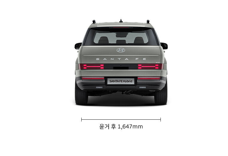 후면부는 깔끔한 LED 테일램프와 함께 견고하면서도 고급스러운 분위기를 연출하며, 리어 스포일러가 스포티한 이미지를 더해줍니다. 이로써 2024 싼타페 하이브리드는 실용성과 디자인적 요소를 모두 갖춘 모델로 완성되었습니다.