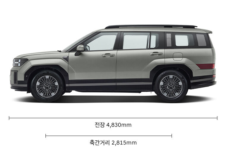 제원은 전장 4,785mm, 전폭 1,900mm, 전고 1,710mm로 대형 SUV로서의 존재감을 자랑하며, 복합 연비는 15.3km/ℓ로 친환경적인 성능을 제공합니다. 트렁크 용량은 634리터로, 2열 및 3열 시트 폴딩 시 최대 1,740리터까지 확장 가능합니다.