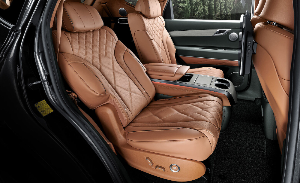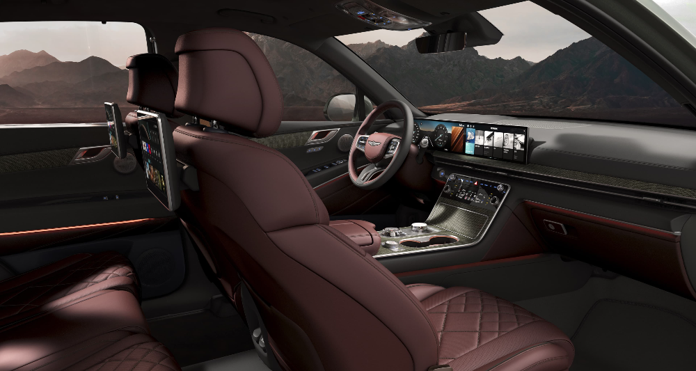 GV80의 실내는 럭셔리함과 편안함을 동시에 제공하는 공간입니다. 고급스러운 가죽 시트와 우드 트림은 실내에서 느낄 수 있는 제네시스의 세심함을 보여줍니다. 특히 시트는 에르고 모션 기능을 탑재하여, 장시간 운전에도 편안한 자세를 유지할 수 있도록 도와줍니다.