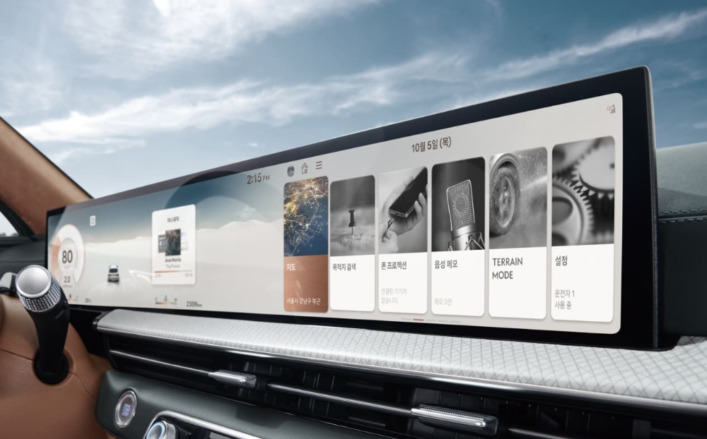 중앙 대시보드에는 14.5인치 터치스크린 디스플레이가 탑재되어 있으며, 직관적인 인터페이스 덕분에 운전 중에도 다양한 정보를 손쉽게 확인할 수 있습니다. 또한 증강현실(AR) 내비게이션을 제공하여, 실제 도로 위에서의 방향 안내를 더욱 쉽게 이해할 수 있게 해줍니다.