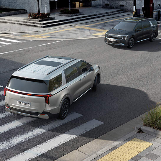 특히 후방 교차 충돌 경고와 360도 서라운드 뷰 카메라가 주차 시에도 운전자의 편의성을 극대화합니다. 대형 미니밴임에도 불구하고 다양한 주차 보조 시스템 덕분에 주차가 수월하며, 전방/후방 주차 센서와 함께 안정성을 높였습니다.
