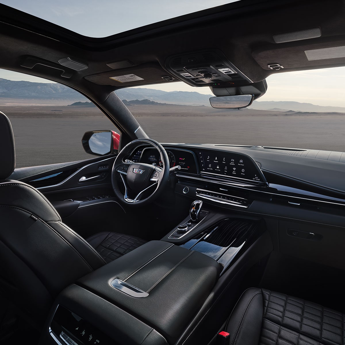 캐딜락 에스컬레이드의 실내는 모든 탑승자에게 럭셔리한 경험을 제공합니다. 가죽 시트는 고급스러운 마감재로 제작되었으며, 앞좌석과 뒷좌석 모두 전동 조절 및 히팅, 통풍 기능을 제공합니다. 앞좌석에는 22방향 전동 시트 조절 기능이 탑재되어 장거리 주행에서도 편안함을 보장합니다. 또한, 2열 좌석은 넓고 편안해 가족 단위의 승객들에게 이상적입니다.