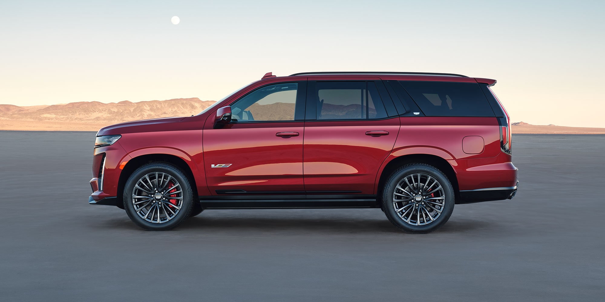 측면부는 전장 5,382mm, 전폭 2,060mm, 전고 1,948mm로 대형 SUV다운 크기를 자랑합니다. 긴 차체와 낮은 지붕 라인이 더해져 차량이 움직이지 않을 때에도 스포티한 감각을 줍니다. 22인치 알로이 휠이 기본으로 장착되어, 대형 SUV의 강인함을 더욱 강조합니다. 캐딜락 에스컬레이드의 디자인은 미니멀하면서도 강인한 인상을 주며, 고급스러움과 남성적인 매력을 동시에 발산합니다.