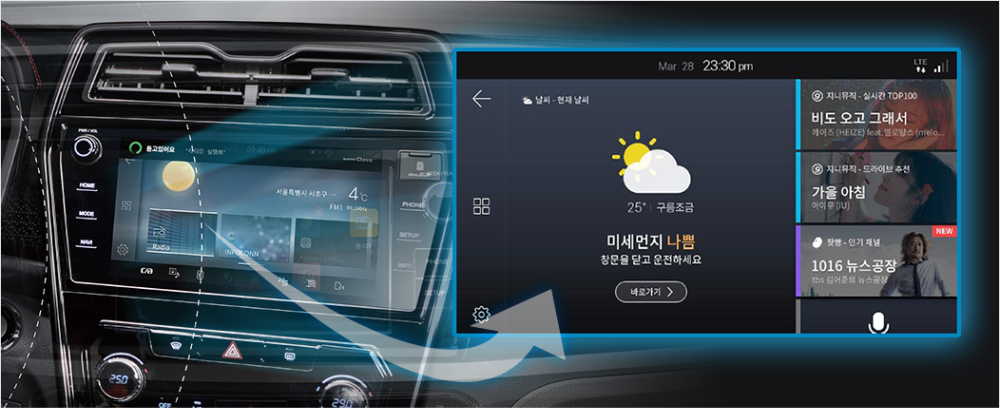 2024 티볼리의 실내는 실용성과 편안함을 모두 고려한 디자인이 돋보입니다. 10.25인치 풀 디지털 계기판과 9인치 터치스크린 인포테인먼트 시스템은 운전자 중심의 레이아웃을 자랑하며, 애플 카플레이와 안드로이드 오토 지원으로 스마트폰과의 연동이 매우 편리합니다. 직관적인 UI 디자인과 빠른 반응 속도로 운전 중에도 쉽게 사용할 수 있습니다.