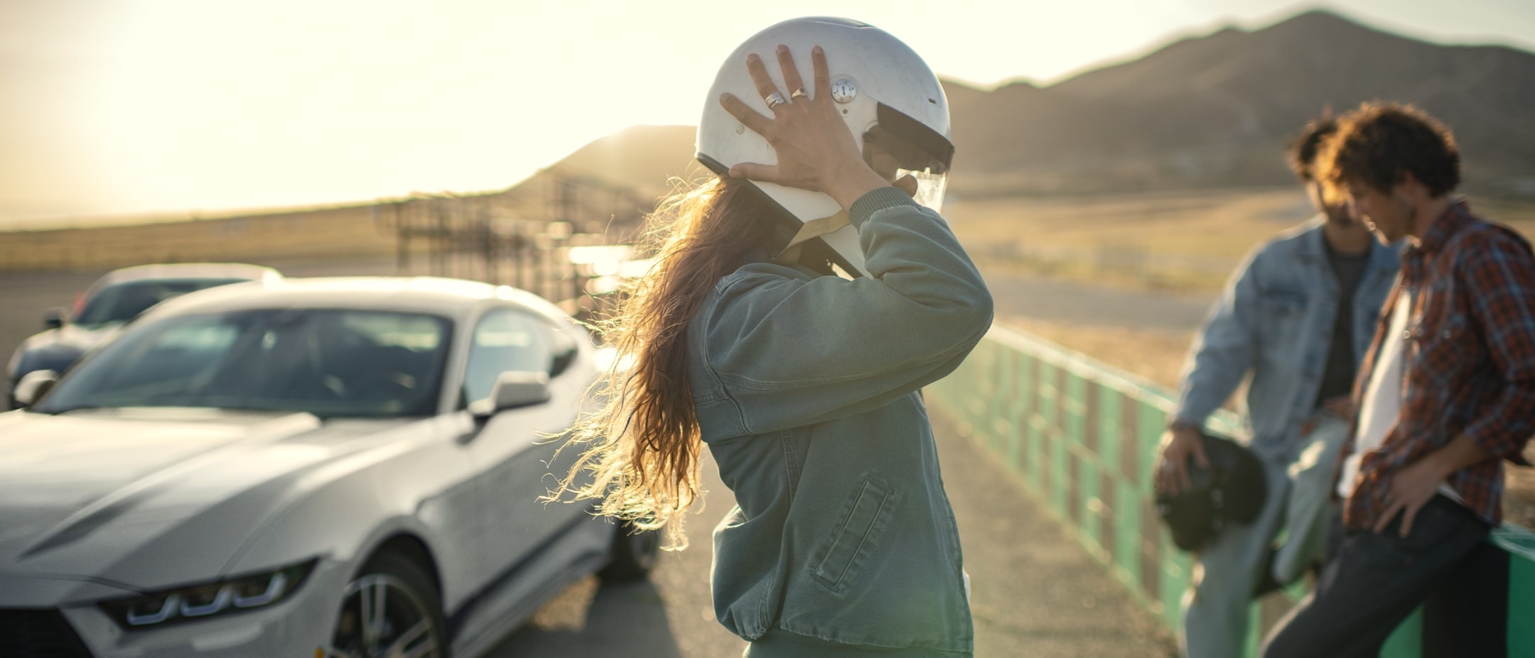 차량의 전장 4,783mm, 전폭 1,916mm, 전고 1,382mm로 낮고 넓은 차체를 자랑하며, 공기 저항을 최소화한 유선형 실루엣이 인상적입니다. 측면부에서는 머스탱의 전통적인 쿠페 스타일이 잘 살아있으며, 19인치 알로이 휠과 날렵한 사이드 캐릭터 라인이 스포티한 이미지를 극대화합니다.