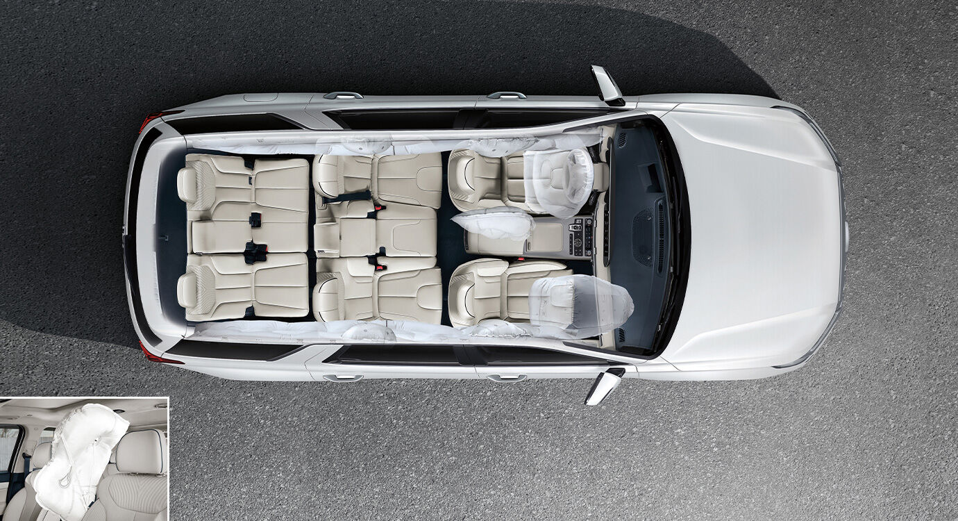 2열과 3열 좌석 역시 시트 히팅 및 통풍 기능을 제공하여 탑승자 모두가 쾌적하게 이동할 수 있습니다. 4구역 자동 공조 시스템은 차량 내부 온도를 균일하게 유지시켜 주며, 파노라마 선루프는 실내를 더욱 개방감 있게 만들어줍니다. 또한 트렁크 용량은 기본 509리터에서, 2열과 3열을 접으면 최대 2,447리터까지 확장할 수 있어 다양한 짐을 적재하기에도 충분합니다.