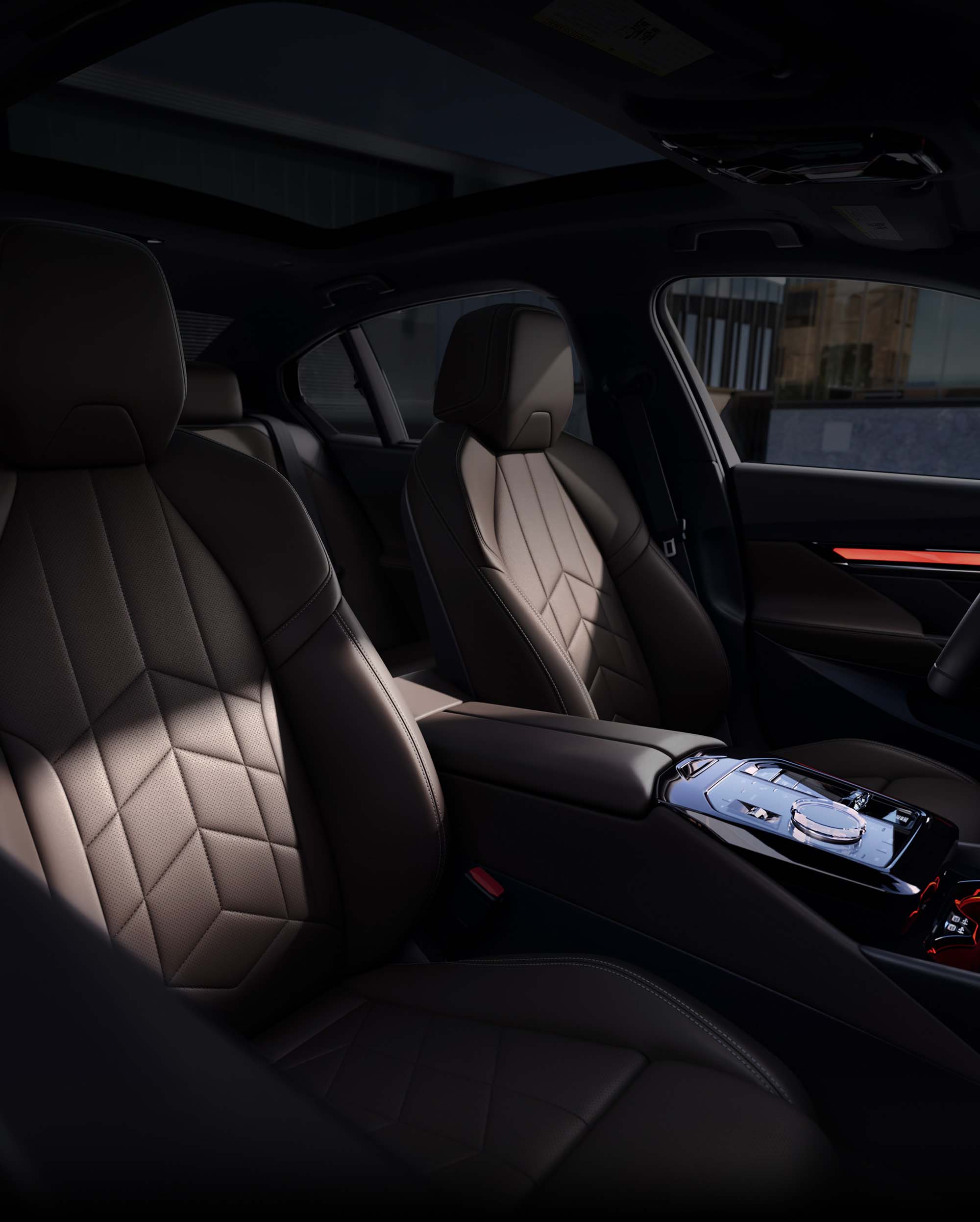 BMW i5의 실내는 디지털 혁신과 고급스러움이 완벽하게 결합된 공간으로, 운전자는 물론 탑승자 모두에게 최상의 편안함을 제공합니다. 프리미엄 가죽 시트알루미늄 및 우드 트림이 조화를 이루어, BMW만의 럭셔리한 인테리어를 그대로 느낄 수 있습니다. 운전석은 전동 조절 기능히팅 및 통풍 기능이 적용되어 있어 장시간의 주행에도 편안한 착석감을 제공합니다.